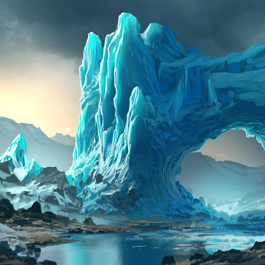 Zwany też łukiem Hadari. Miejsce to nie jest w całości pokryte śniegiem. Znajduje się blisko centralnej części. Niebieski lód i kształt w jaki się uformował nadał nazwę najbliższemu otoczeniu. Przy jeziorze znajdującym się obok widać wystające skały, rzadko pada tu śnieg, dzięki czemu niezaśnieżone części ziemi mogą pozostać w swoim pierwotnym stanie. Należy jednak uważać, mogą pojawiać się tu niedźwiedzie śnieżne - na szczęście nie spotkamy tu niedźwiedzi olbrzymich.